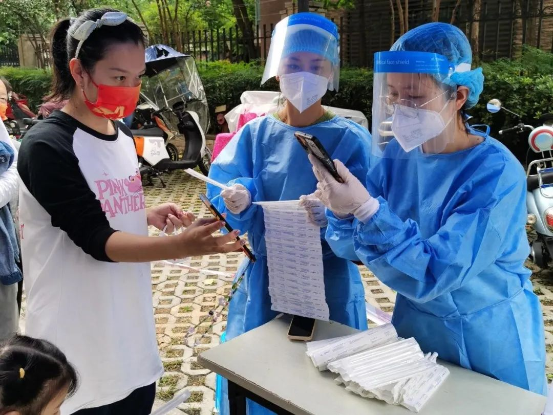 教师第一支部书记冯华老师主动参与社区疫情防控工作,在学府尚郡社区协助工作人员做好核酸检测工作,每天和其他志愿者共同负责1800位居民的核酸信息录入工作。
