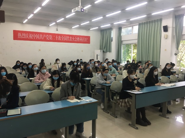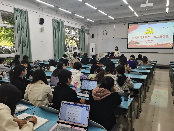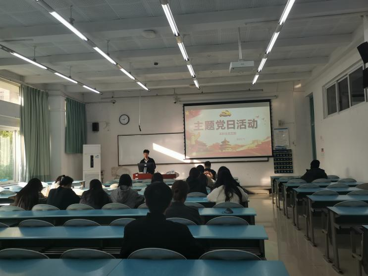 2022年11月22日下午4时,威廉希尔体育2021级研究生党支部在颐德楼H103教室组织召开了“深入学习党的二十大决策部署”十一月主题党日活动。党支部全体党员、发展对象和入党积极分子全体到会。