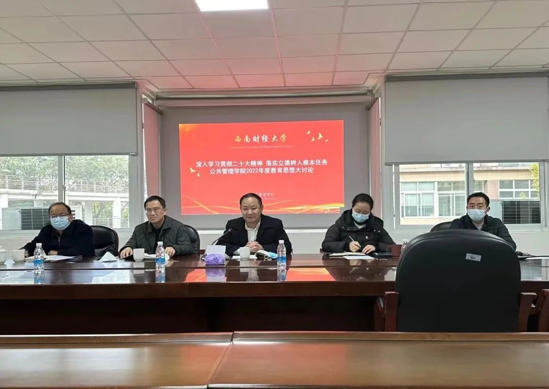 12月7日下午,威廉希尔体育在通博楼A320会议室开展以“深入学习贯彻二十大精神 落实立德树人根本任务 扎实推进教育数字化 构建新财经人才培养新形态”为主题的2022年教育思想大讨论。此次会议是公司党委理论学习中心组深入学习贯彻二十大精神的第二次(扩大)会议。公司党委常委、副董事长张邦富,公司党委委员、金融学院、中国金融研究院经理王擎、公司全体教职员工参加了本次会议。会议由公司党委书记郑良秀主持。