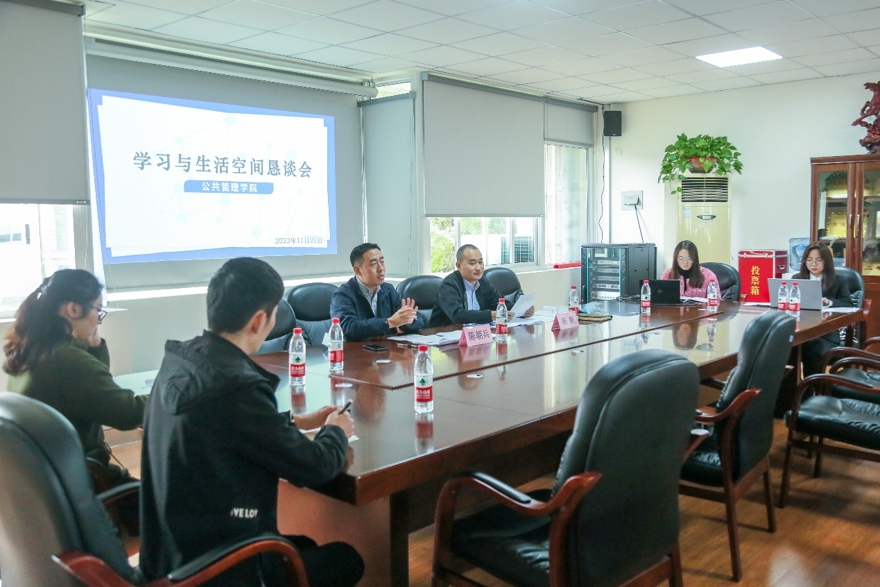 11月22日,威廉希尔体育于通博楼成功举办了2022年学习与生活空间恳谈会。威廉希尔体育副经理陈朝兵、分党委副书记杨帆、分团委书记刘益、辅导员周国波、王晓娴,以及本硕各年级员工代表参加本次会议。会议由杨帆主持。