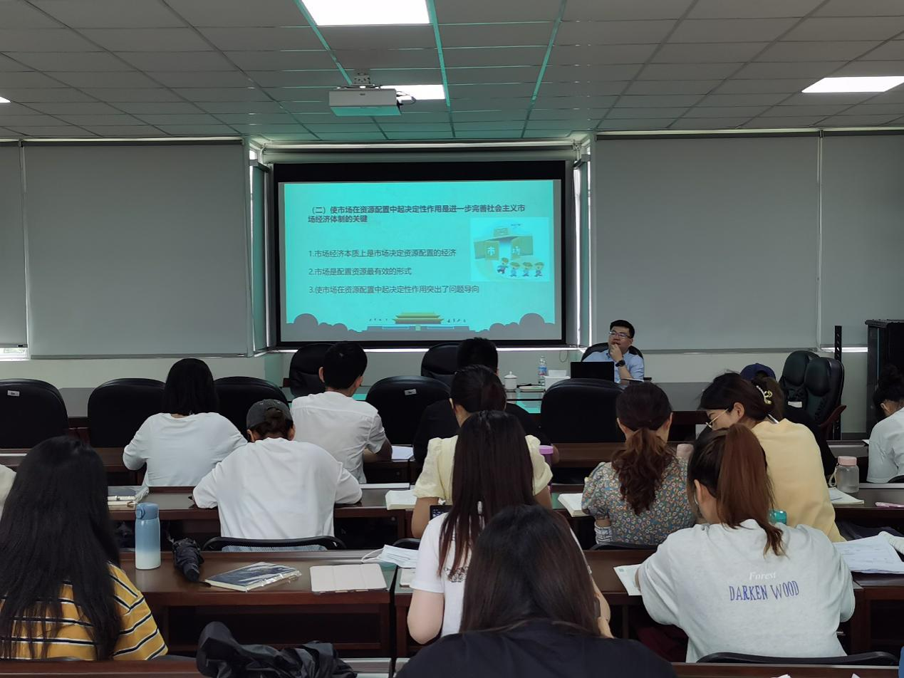 在中国共产党成立100周年、全党全国开展党史学习教育之际,赵海程从政府与市场的关系出发,带领在座师生回顾中国共产党领导中国经济体制改革的发展史。他指出,处理好政府与市场的关系是经济体制改革的核心,党的十八届三中全会将市场在资源配置中起基础性作用修改为起决定作用,更加明确强调了公有制经济和非公有制经济的同等重要性,这些突破,不仅巩固和发展了社会主义制度,同时丰富和完善了社会主义理论。此外,从“构建国内国际双循环相互促进的新发展格局”为切入点,赵海程深刻地阐明中国共产党领导中国人民进行革命、建设、改革的发展历程和中国特色社会主义进入新时代的辉煌成就,强调,这无一不展现着世界第一大党的责任与担当。