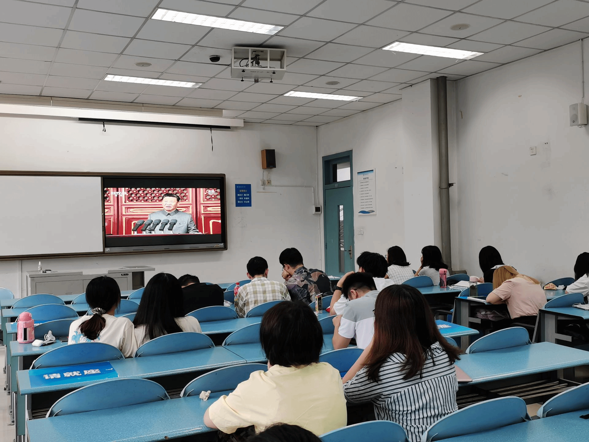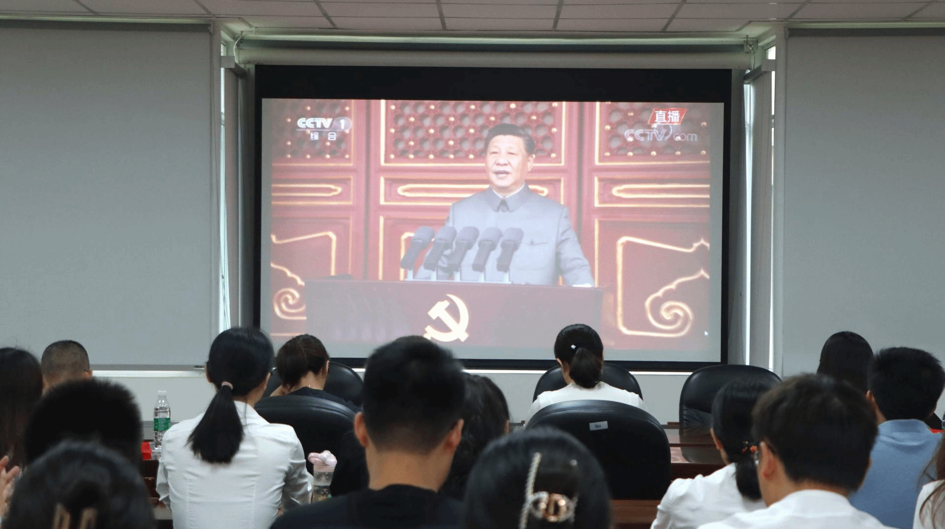 2021年7月1日,威廉希尔体育组织师生党员在通博楼A320会议室集中收看中国共产党成立100周年庆祝大会直播。公司领导班子、全体教职工、本科生党支部、研究生党支部50余名师生党员代表参加。此外,还有50余名威廉希尔体育员工党员、预备党员、积极分子在经世楼B202教室自发组织观看,并认真学习习近平总书记发表的重要讲话。