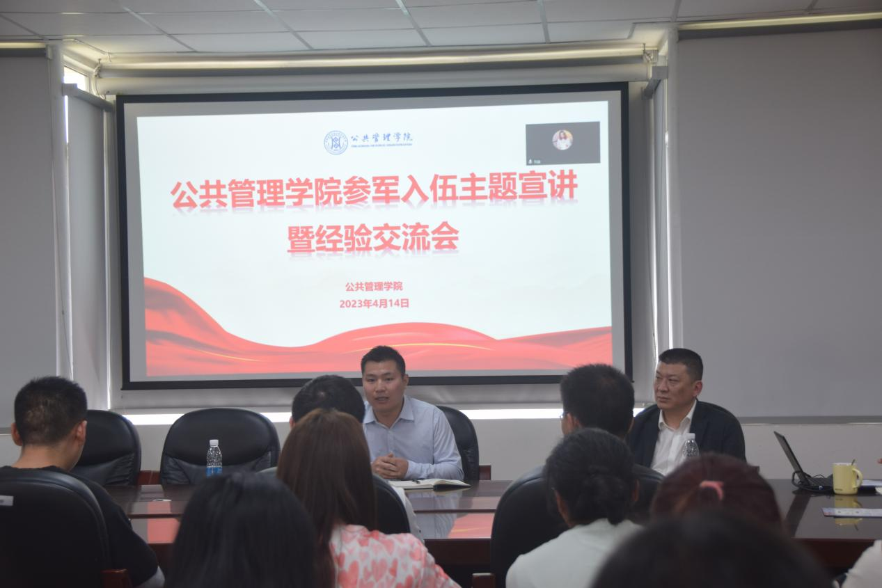 刘厚雄、陆琪、熊朝高三位退伍老员工士兵代表分别结合自己在部队的锻炼、退役后的学习情况和工作实际进行了分享,使同学们更生动立体地了解军营生活,给同学们提出参军入伍的建议。