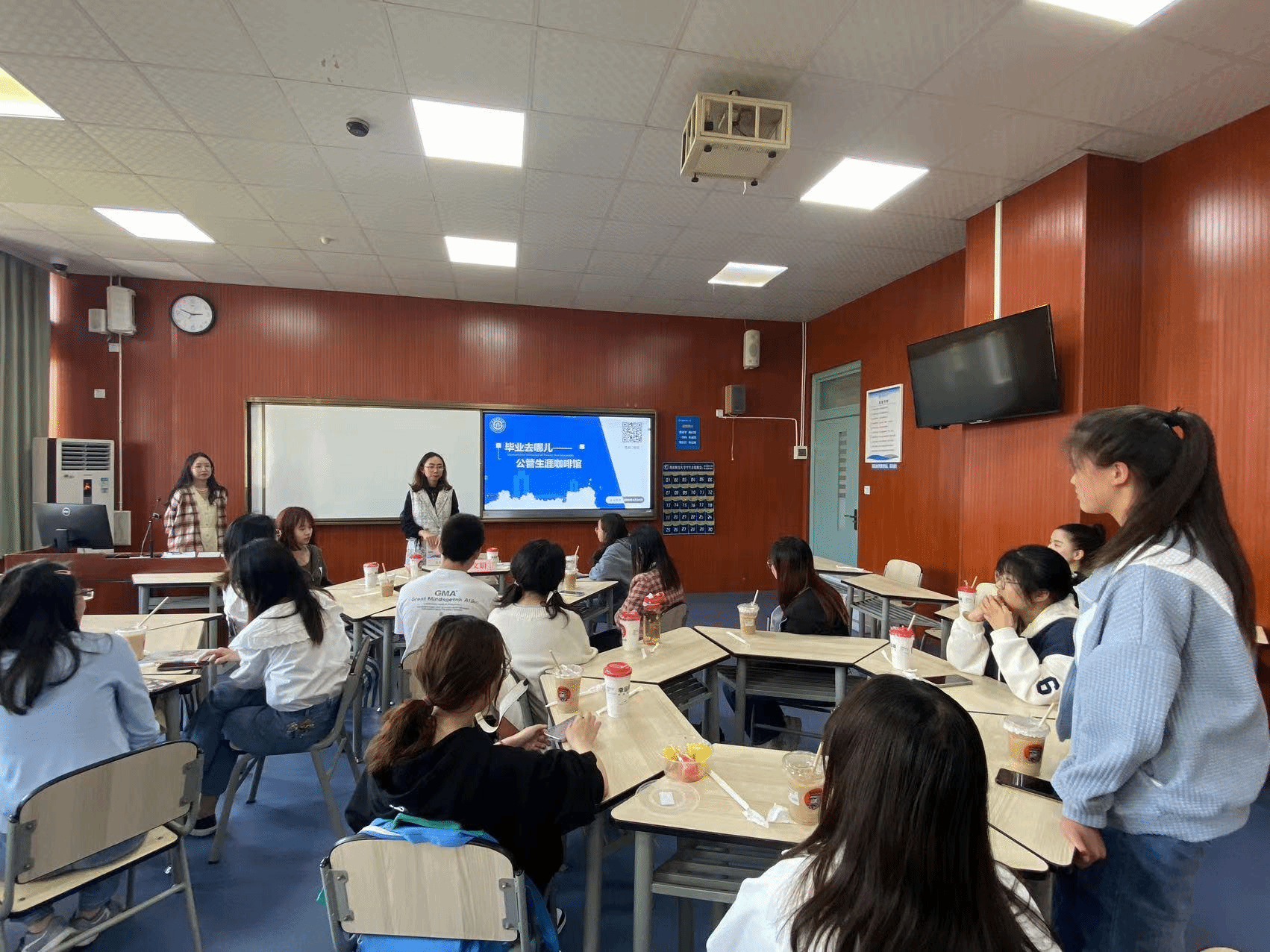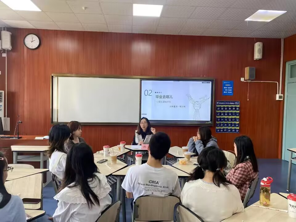 4月25日下午,威廉希尔体育员工发展中心主办的毕业去哪儿——公管生涯咖啡馆主题沙龙在柳林校区经世楼B408和云端同步举行。本次活动邀请到班文娟员工担任嘉宾,与在校同学对话交流。